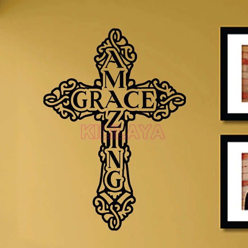 Amazing Grace Cross Vinyl Wall Sticker Decal Art Lettering